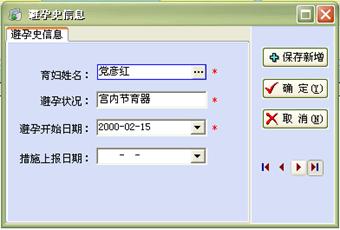 已婚育齡婦女避孕信息通過此模塊錄入,避孕信息是歷史庫。包括:育婦姓名、避孕狀況、避孕開始時間、上報時間。如圖2.17 所示: